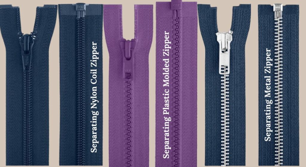 Before you buy a zipper check whether it separates completely at the bottom or stays joined. A separating zipper splits into two halves at the bottom stop. This is what you need for jacket and coat fronts where the garment opens completely. A non-separating zipper stays joined at the bottom and is used for dresses, skirts, pants and anywhere the closure does not need to come fully apart. Buying the wrong one means a trip back to the store so check this before you leave.