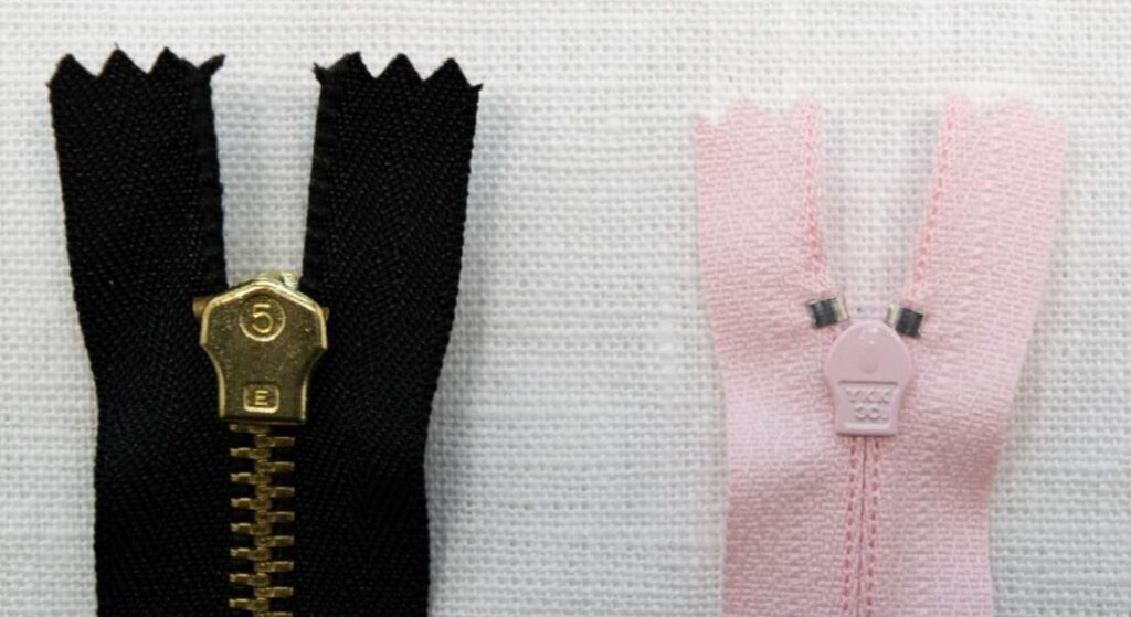 Metal zippers have teeth and a slider made from brass, nickel or other metals. They are strong and they look substantial. That visible hardware is part of the design not something to hide.